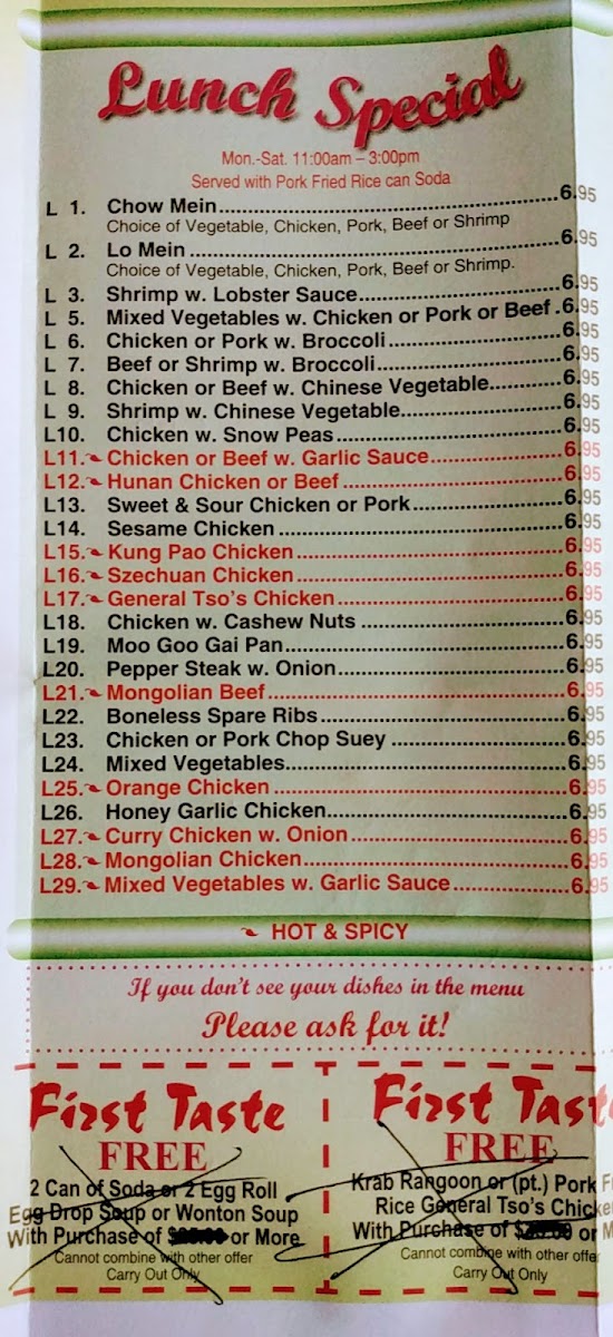 Welcome to First Taste Chinese Restaurant, a hidden gem located at 1466 US-41 in Inverness, FL. This establishment offers delightful Cantonese-inspired dishes that have impressed many locals and visitors alike. Patrons rave about the freshness and quality of the food, with highlights including the Szechuan beef and Singapore Mei Fun noodles.